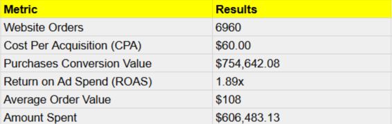 "Thanks to the Facebook and Instagram ad campaigns, we saw a massive increase in website orders. The team’s strategies, attention to detail, and ability to optimize budgets delivered outstanding results."